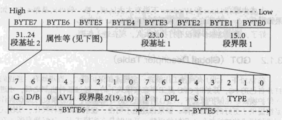 段描述符的第20位为AVL字段,从名字上看它是AVaiLable,可用的。不过这“可用的”是对用户来说的,也就是操作系统可以随意用此位。对硬件来说,它没有专门的用途。