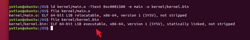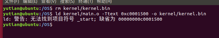 ld kernel/main.o -Ttext 0xc0001500 -e main -o kernel/kernel.bin