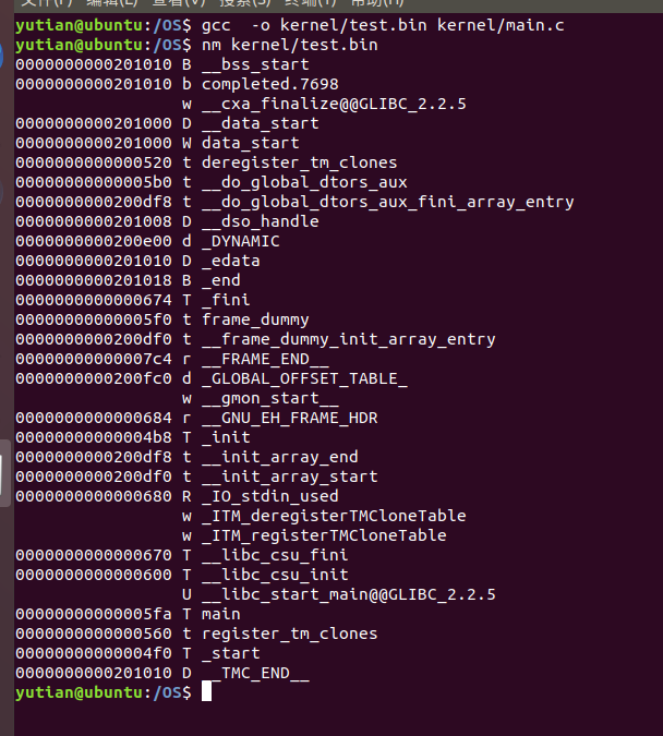 nm kernel/main.o 命令通常用于显示目标文件(object file)中的符号(symbols)。当你运行 nm kernel/main.o 时,它会列出在 kernel 目录下的 main.o 目标文件中定义的符号。