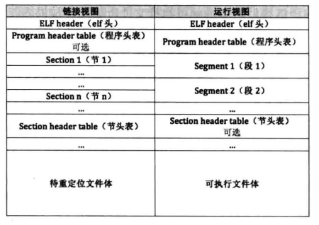 • 程序头表和节头表:因为程序中的段和节的大小和数量是不固定,因此程序头表(program header table)和节头表(section header table)是专门用来描述它们的。表类似于数组,里面存放着多个程序头和节头。