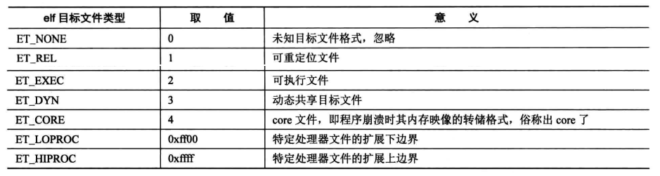 2.e_type:占用2 字节,用来指定ELF目标文件的类型。