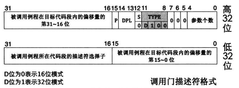 - 门结构是记录一段程序起始地址的描述符。