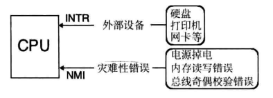 一个是INTR可屏蔽中断,接收正常的外设中断