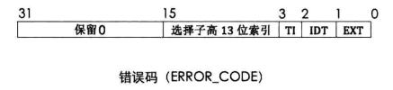 中断发生时会压入一个中断错误码,错误码格式如下: