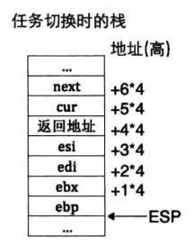 不要误以为此时恢复的寄存器映像是在上面刚刚保存过的那些寄存器。在同一次switch to的调用执行中,之前保存的寄存器属于当前线程cur,之后恢复的寄存器映像属于下一个上处理器运行的线程next,这些被恢复的寄存器映像是在之前某次执行switch to时,由现在的这个next线程作为那时候的当前线程cur,被换下处理器前保存的。